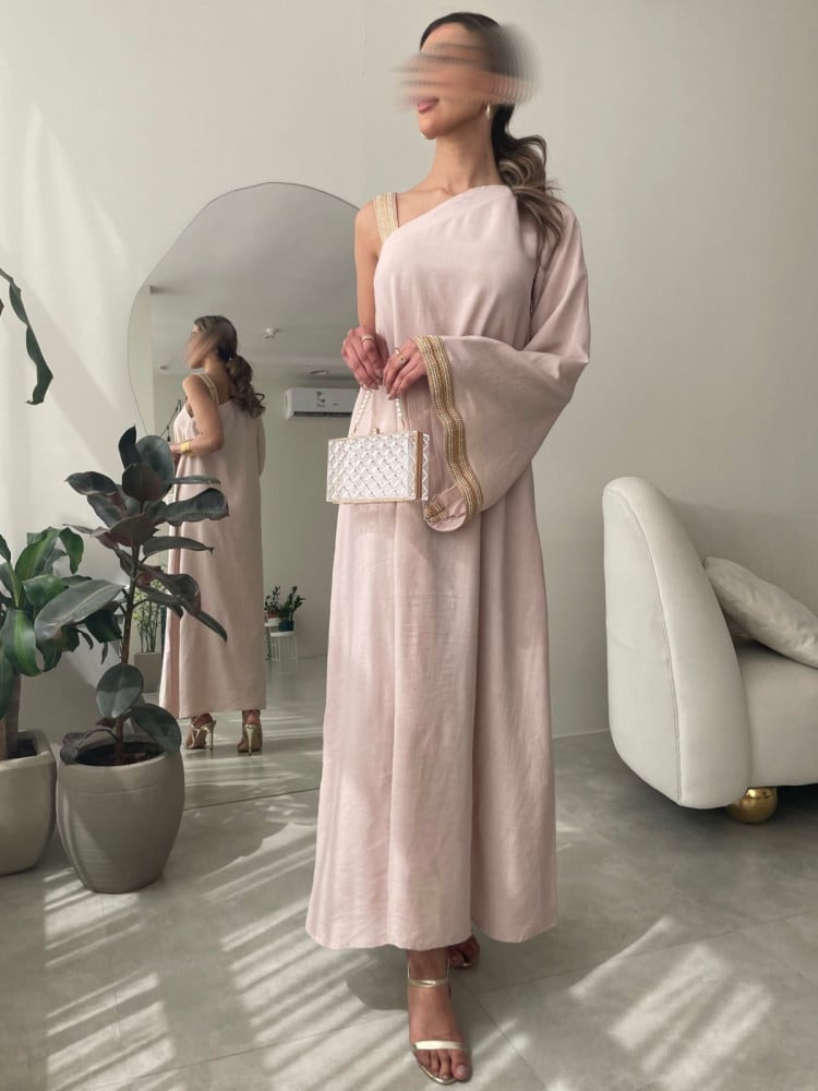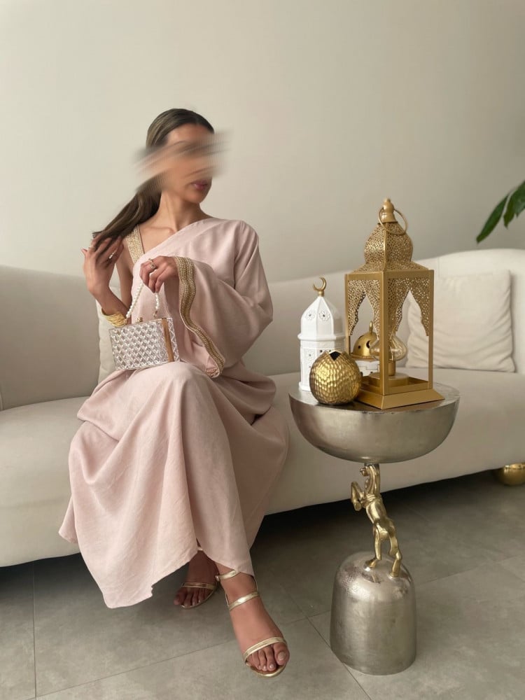 جلابيه لينن بينك، جدول المقاسات موضح بالصور أعلاه.