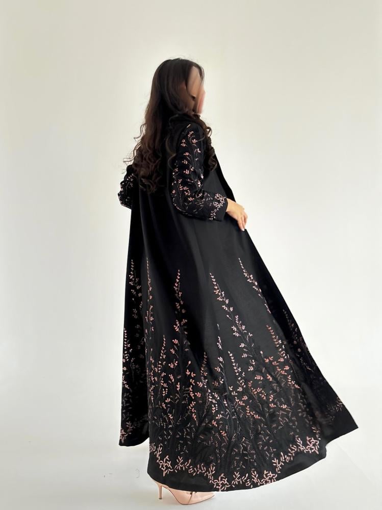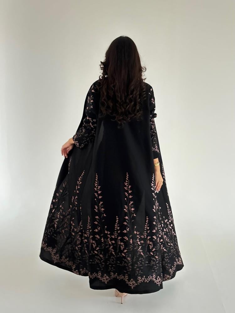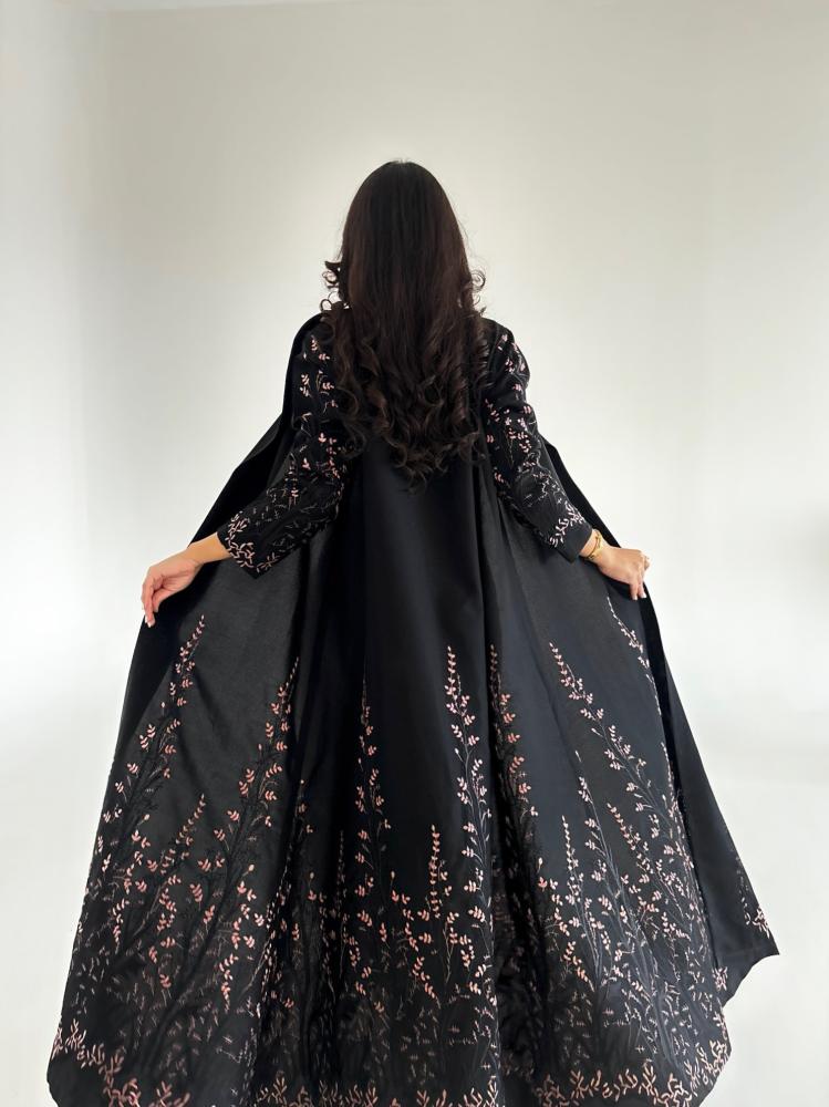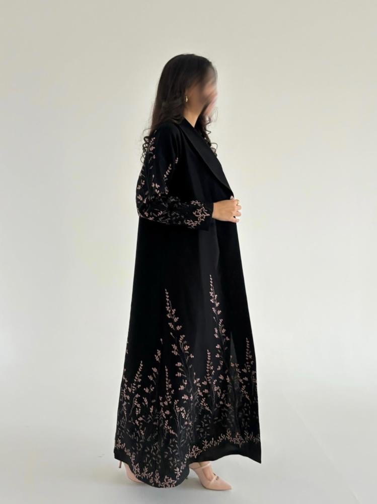عباية قماش كريب مطرز، طرحه اسود ساده